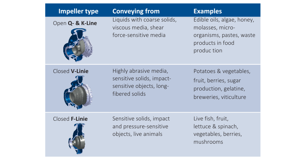 The screw centrifugal pumps from Hidrostal enable the gentle pumping of sensitive food. Thanks to the large ball passages, even larger objects can be pumped without damage.