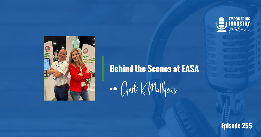 This week on the Empowering Industry Podcast, we’re taking you inside EASA 2025 with Charli K. Matthews. Walk the show floor with us as Charli connects with industry experts about what they’re showcasing, why they value EASA, and the growing impact of the Women of EASA. We stop by the Nidec booth to talk with Patrick Hogg, visit ABB to chat with Robert Boyce, and even run into one of our Industry Person of the Week features, Taylor Powell. From insightful conversations to powerful community moments, this episode captures the energy, innovation, and collaboration at the heart of EASA 2025.