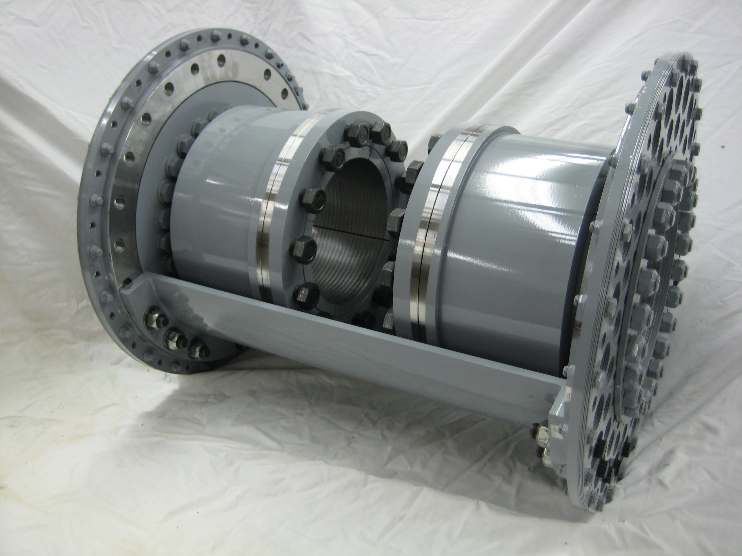 There are generally two different sleeve configurations used in a close coupled coupling. The first is where the sleeve is split axially into two pieces. The other option is to split the sleeve perpendicular to the rotating axis and adding a flange somewhere in the middle of the coupling. In this case the sleeve could be in two or three pieces. There are several factors which will help decide which configuration is best – speed, spacing, installation/removal geometry, bolt access, etc.